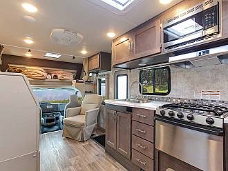 Kühlschrank mit Gefrierfach, Herd, Mikrowelle, Spüle, Elektrische Wasserpumpe, Fließend Kaltwasser, Fließend Warmwasser, Heizung im Wohnbereich, Dusche, Waschbecken, Toilette, Frischwassertank: 114 L, Abwassertank: Greywater 106L, Blackwater 80L